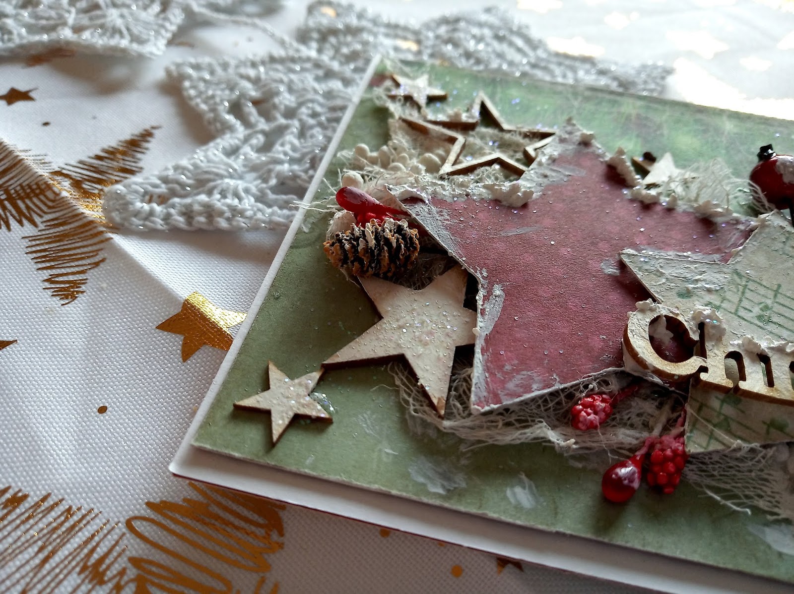 today I would like to present Christmas-winter card based on Carft o'Clock papers, bear-stamp coloured with Touchfive markers and shaker box. The whole composition is based on blue shades. The card did not demand high costs of money or time.